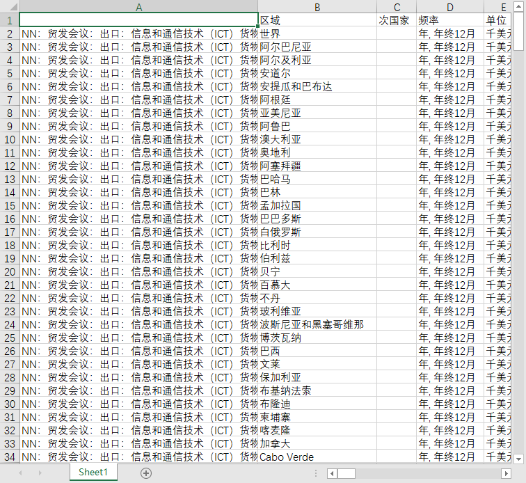 全球世界各国地区国际贸易信息和通信技术消费电子设备进口出口值2000-2023贸发会议UNCTAD数据