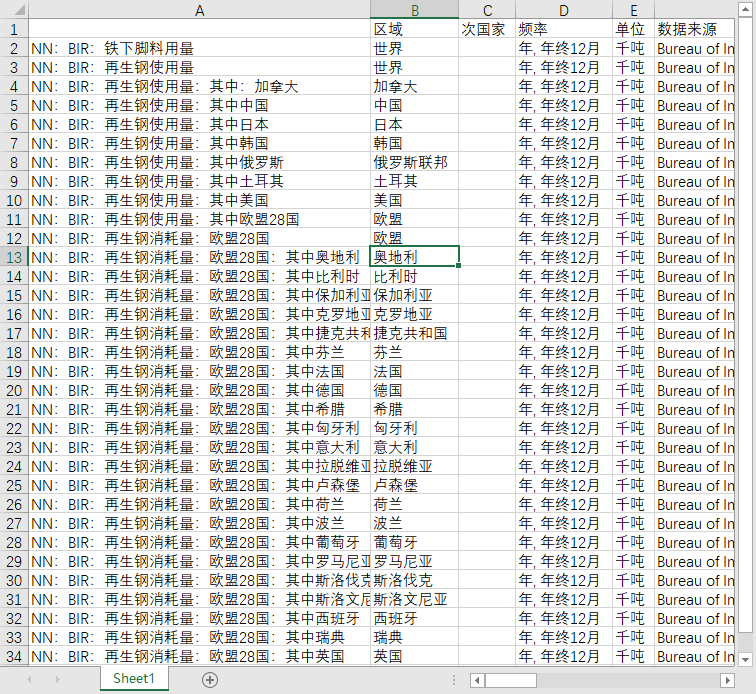 NN:BIR:再生钢消耗量:欧盟28国:其中奥地利