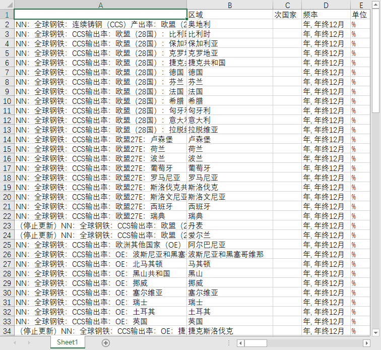 (停止更新)NN:全球钢铁:CCS输出率:OE:捷克斯洛伐克