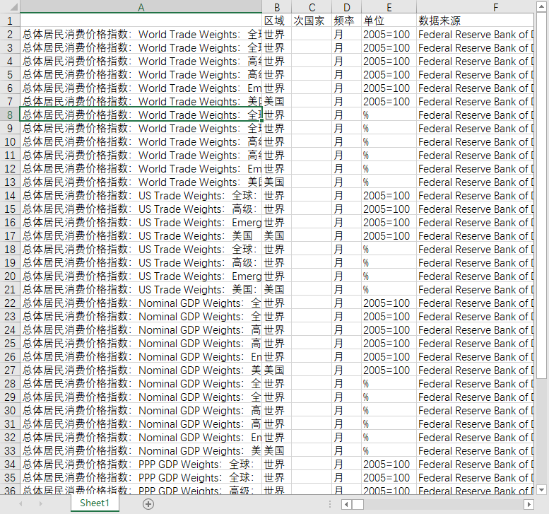 总体居民消费价格指数:Nominal GDP Weights:高级:Excl United States