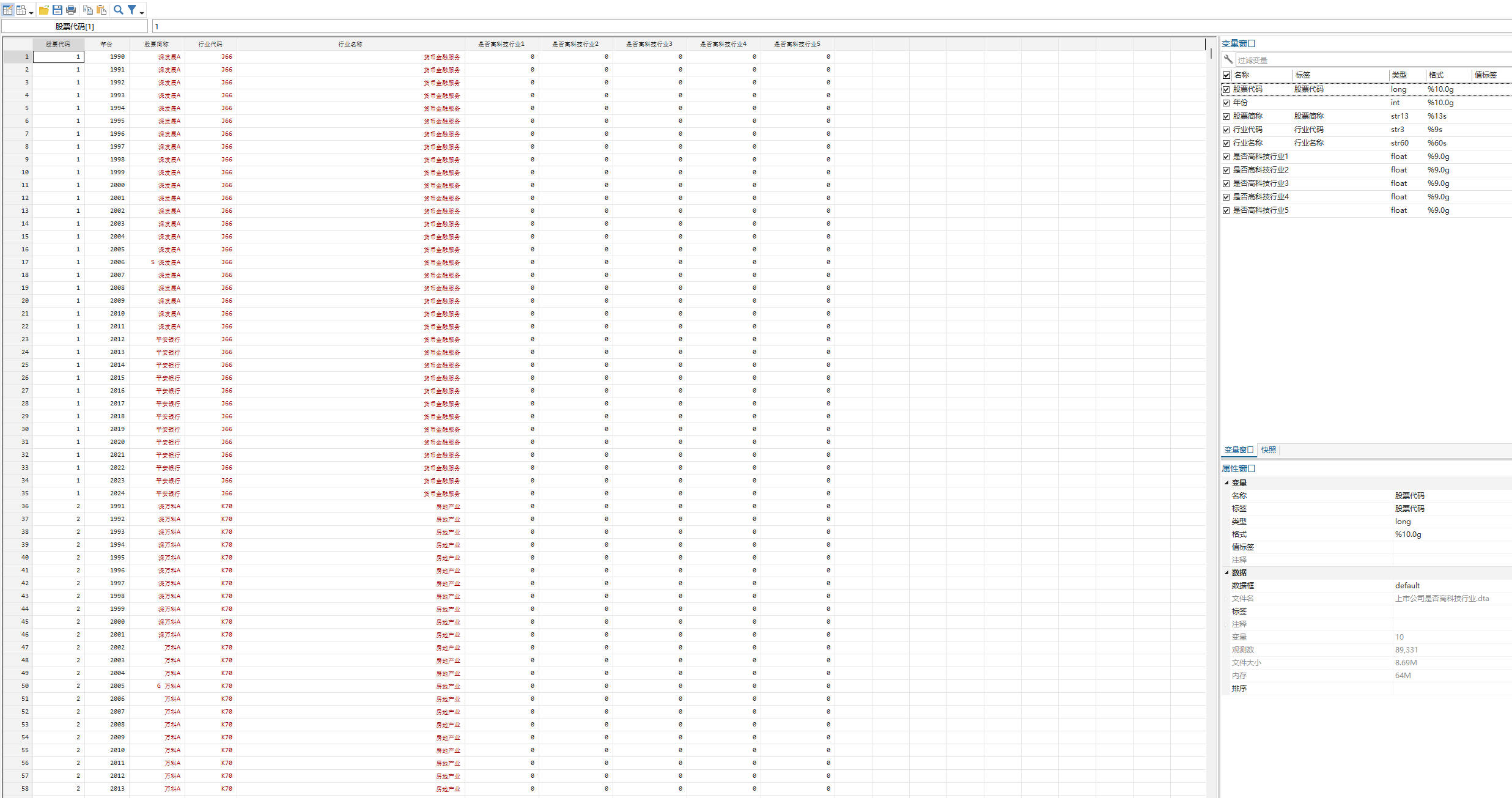 股票代码 年份 股票简称 行业代码 行业名称 是否高科技行业1 是否高科技行业2 是否高科技行业3 是否高科技行业4 是否高科技行业5