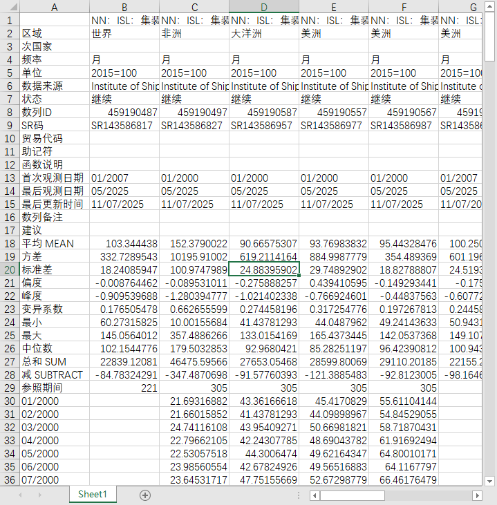 全球世界各大洲海上运输航运中国北美波罗的海东南亚集装箱运输指数2000-202505月度数据