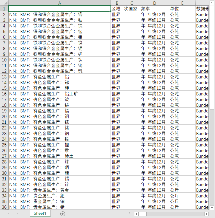 NN:BMF:有色金属生产:稀土