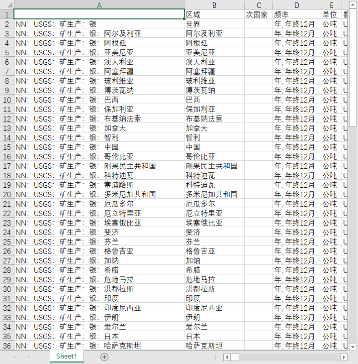 (停止更新)NN:USGS:矿生产:银:其他地区