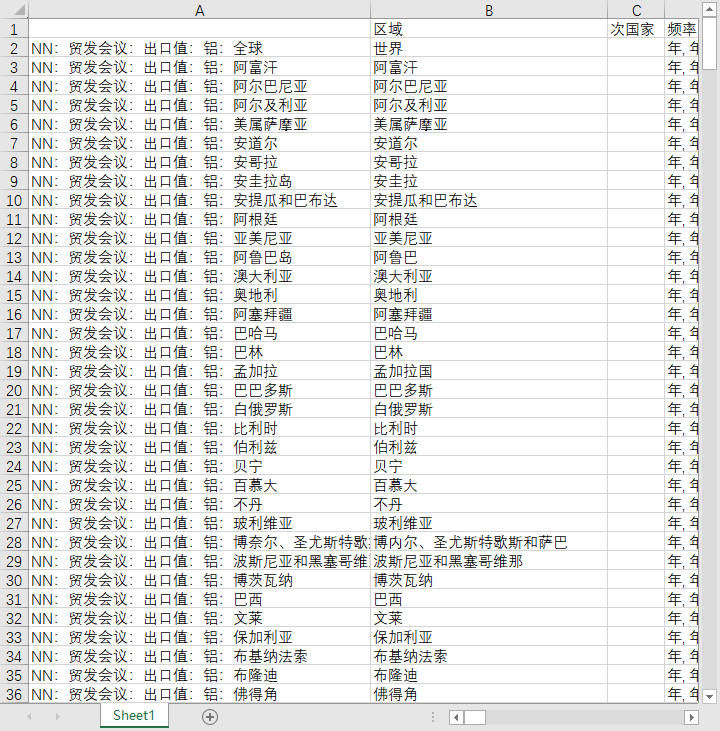 全球世界各国地区有色金属铝进口出口进出口值1995-2024年度国际贸发会议数据