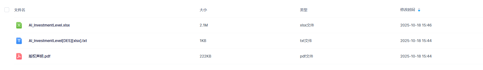 本数据基于上市公司财务报告,对2010-2024年人工智能软件投资、人工智能硬件投资、人工智能总投资、人工智能投资水平进行整理计算,数据包含原始数据、计算代码及最终结果,适用于行业比较、企业竞争力分析与政策研究
