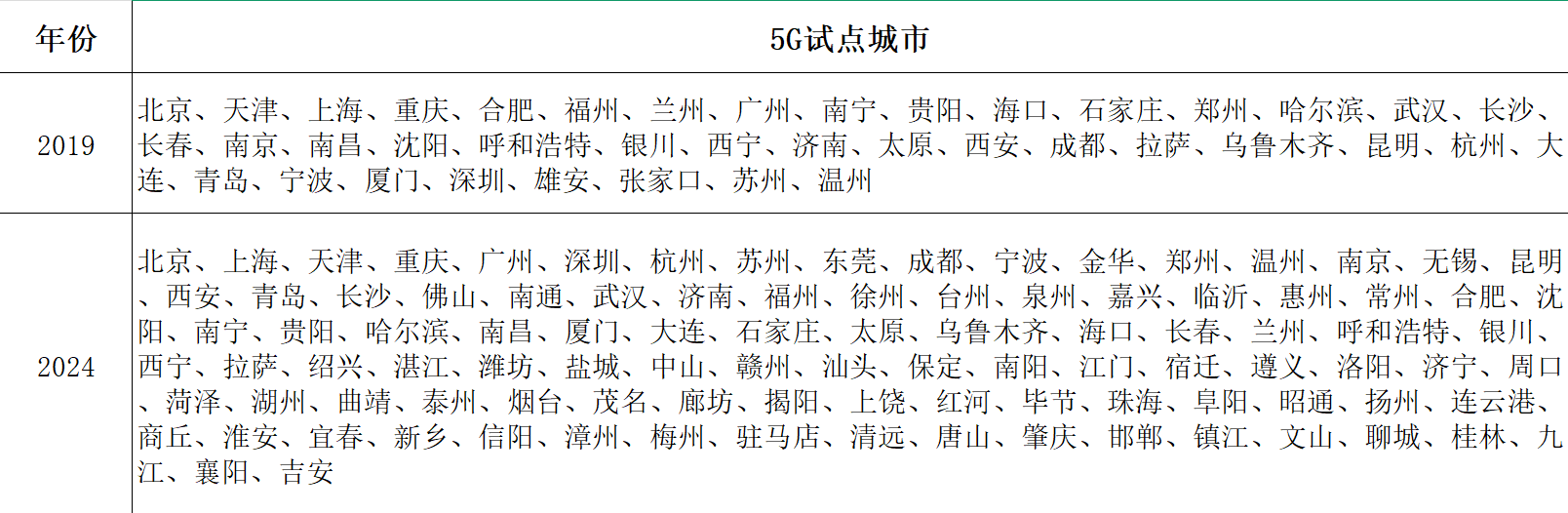 城市代码 | 年份 | 是否5G城市 |