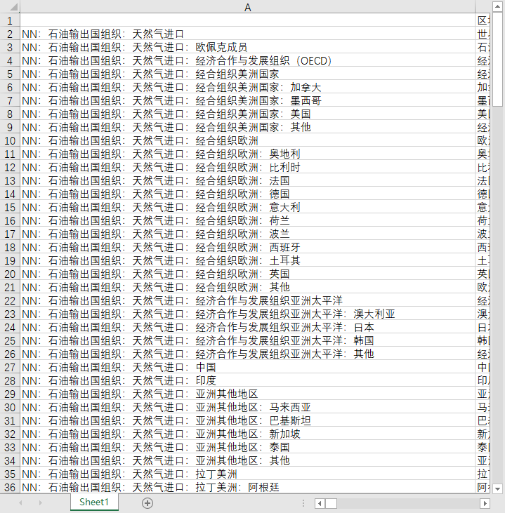 能源行业全球世界各国地区天然气进口出口进出口贸易量1960-2024石油输出国组织OPEC数据