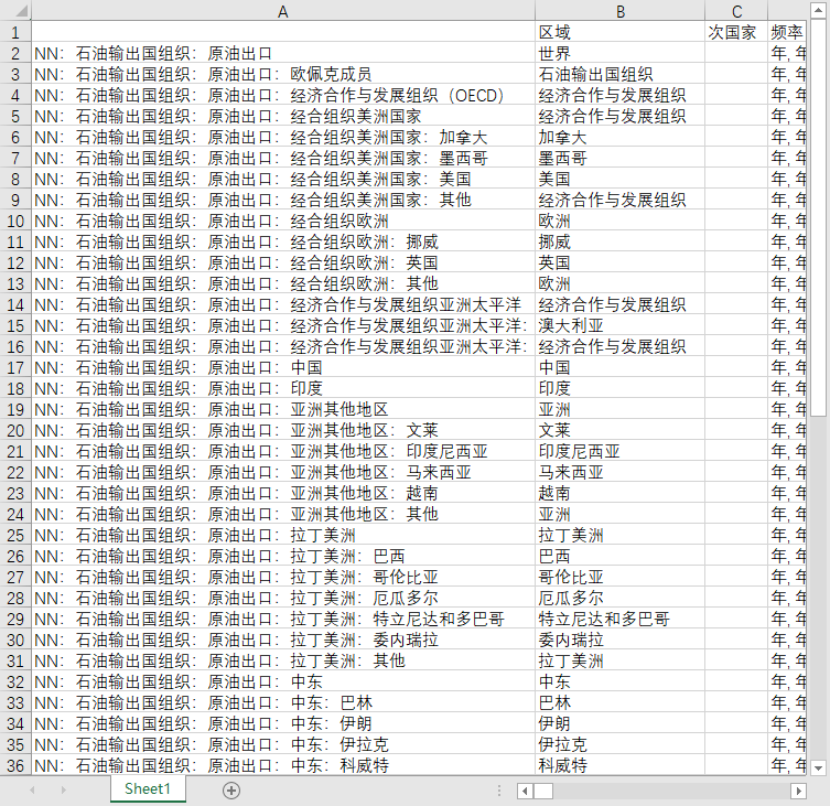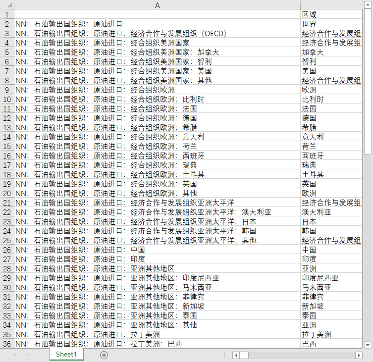 能源行业全球世界各国地区原油石油进口量、出口量1980-2024石油输出国组织OPEC数据