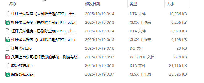 - 文件格式:Dta格式(使用Stata打开)、Xlsx格式(使用Excel打开)