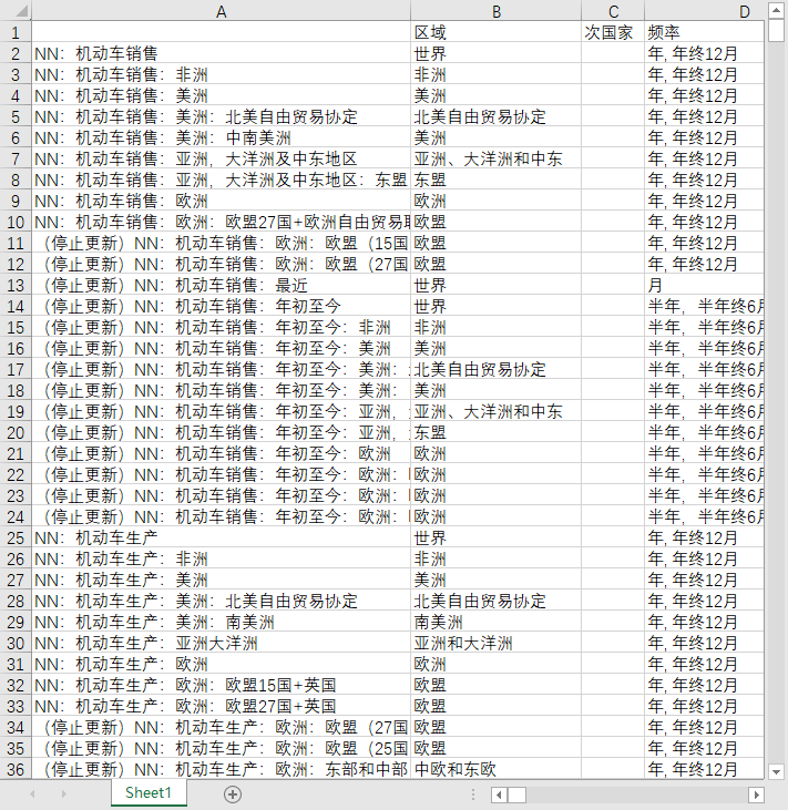 (停止更新)NN:机动车生产:欧洲:东部和中部