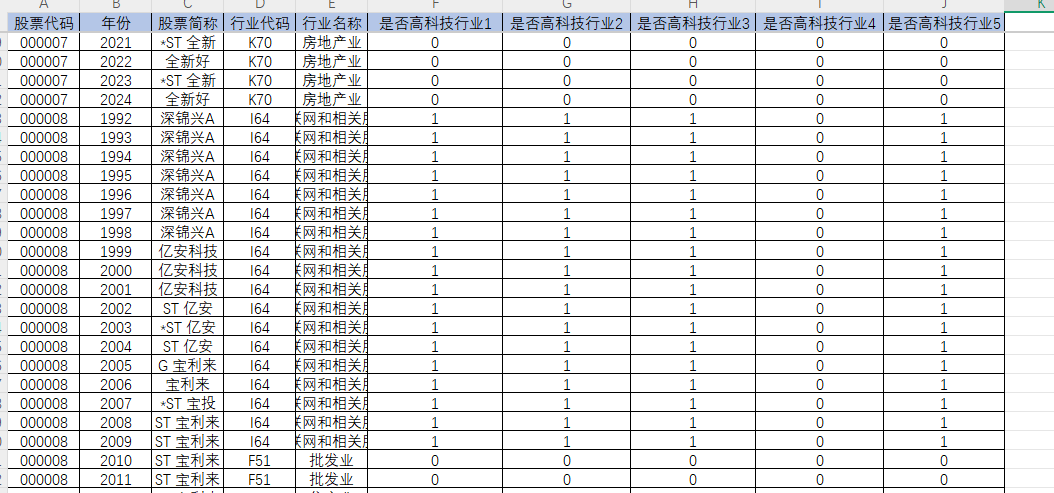 附件 上市公司是否为高科技企业(1990-2024)5种测算方法