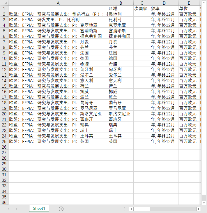 欧盟各个国家地区制药产业研究与发展开发支出2003-2023制药行业概要统计1990-2024