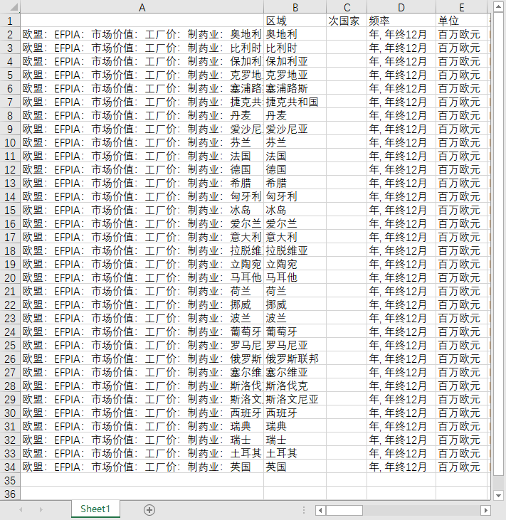 欧盟:EFPIA:市场价值:工厂价:制药业:奥地利