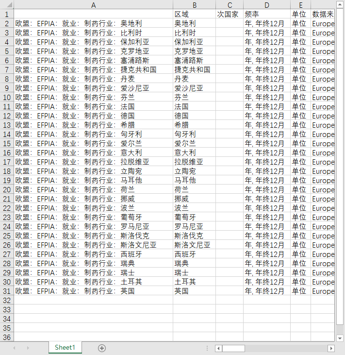 欧盟:EFPIA:就业:制药行业:奥地利