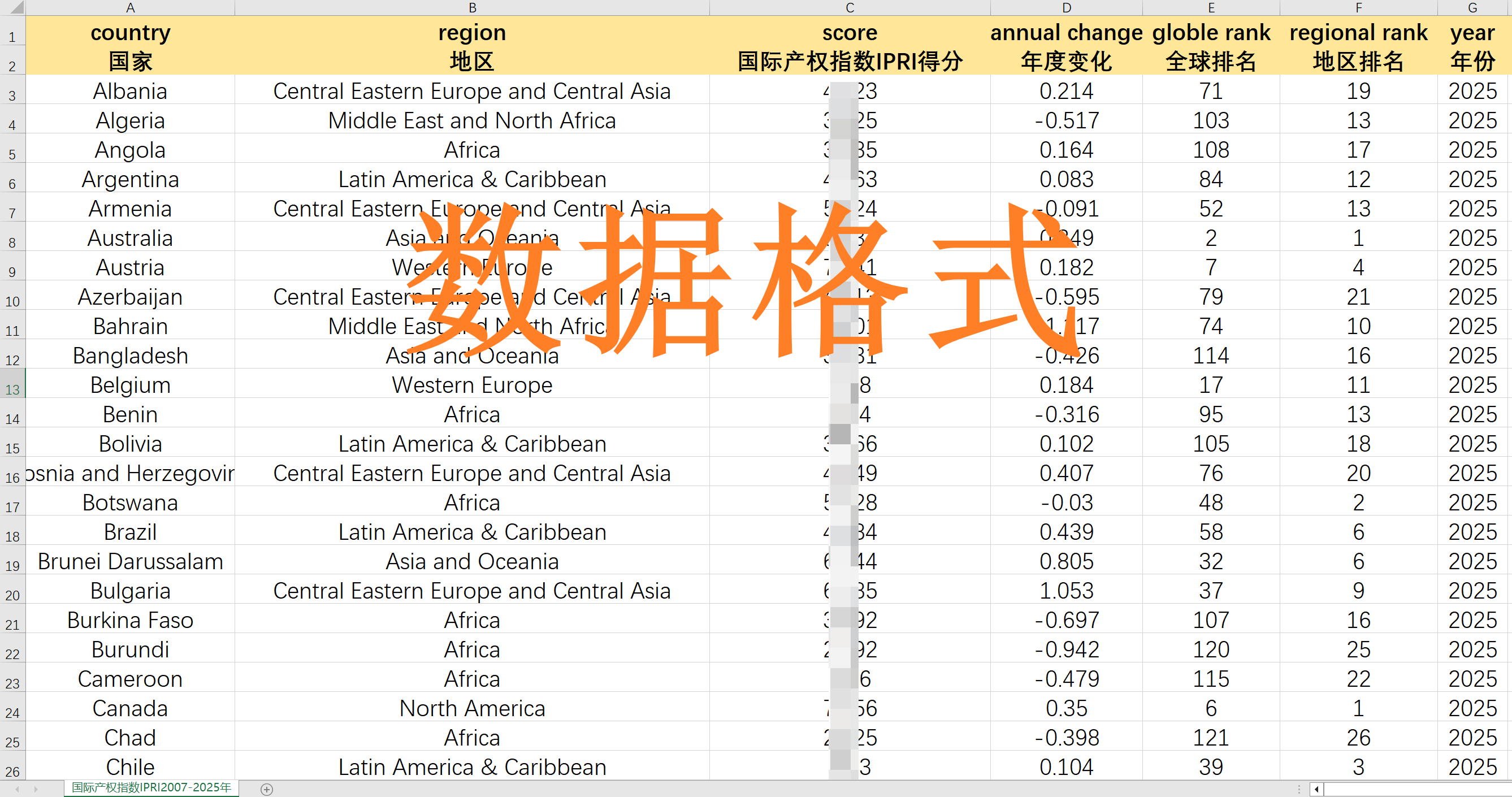国际产权指数IPRI !!2007-2025年!(包含2025年的数据)最新!!