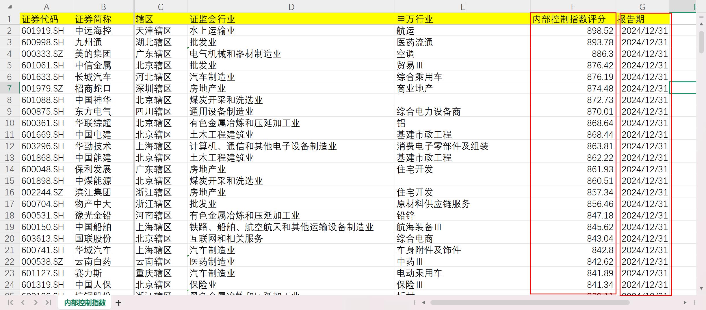 另外更新至2024年的内部控制评级也有,在另一个帖子里,需要自取