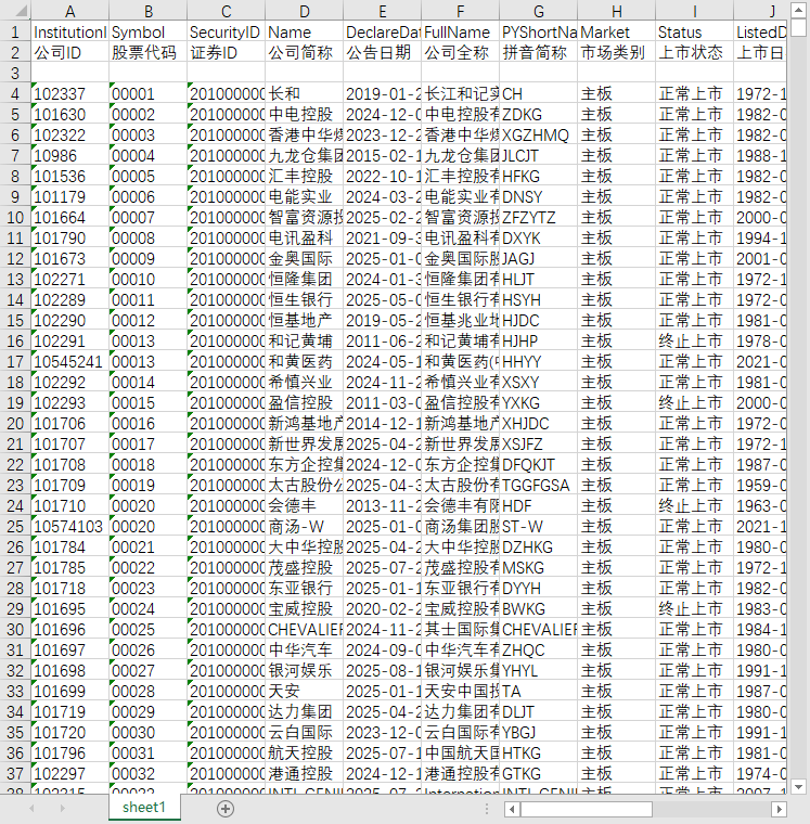 数据范围:香港上市公司,H股、港股、各个个股的数据
