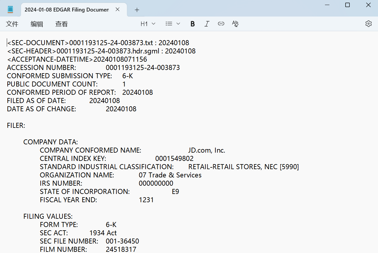 【美股】京东JD.O历年公告大全jd_sec_filings_TXT.zip