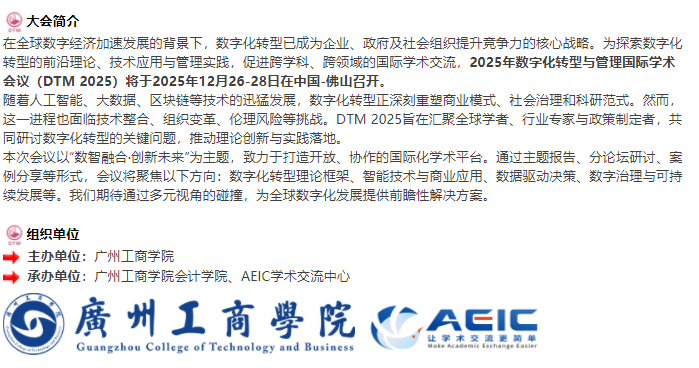 2025 International Conference on Digital Transformation and Management(DTM 2025)