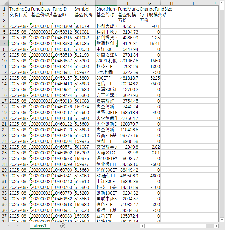 交易日期 基金份额类别ID 基金ID 基金代码 基金简称 基金规模 每日规模变动