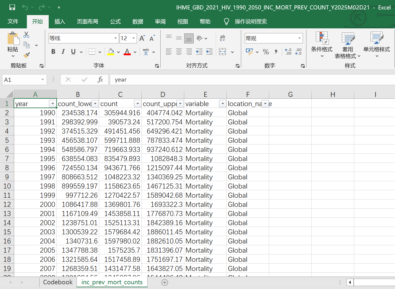 其核心价值在于解决“HIV防控缺乏长期量化数据+未来趋势难预判”的痛点:既覆盖30余年历史数据(1990-2024),又包含26年未来预测(2025-2050),为全球HIV流行趋势分析、防控策略制定提供统一的科学依据。