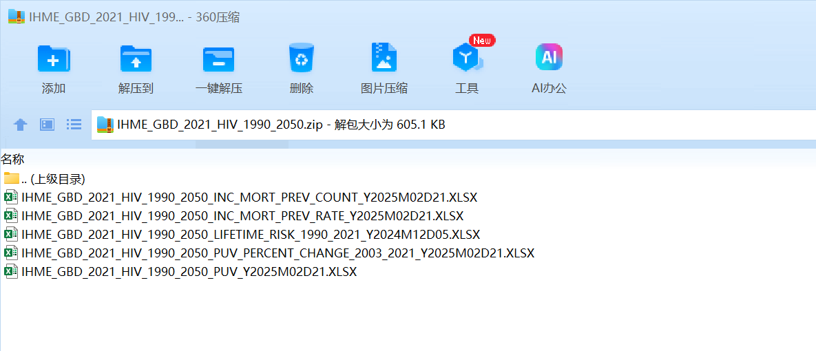 该数据集全称为2021年全球疾病负担研究(GBD 2021)1990-2050年HIV终生感染概率与未抑制病毒血症流行率估计及预测数据,由全球健康领域权威机构——健康指标与评估研究所(IHME,美国西雅图总部) 发布。