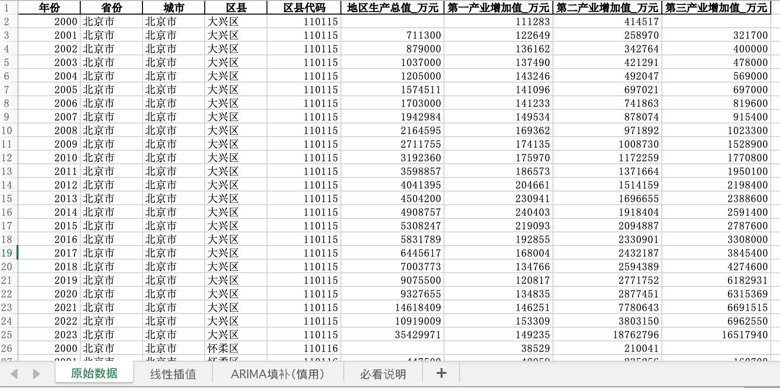 2001—2024年中国2700区县县域面板数据—生产总值GDP第一二三产业增加值.xlsx