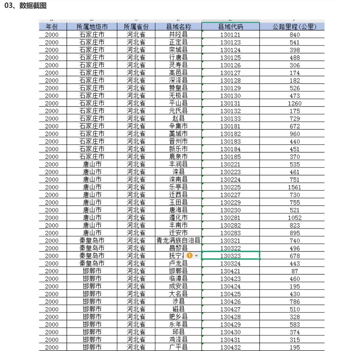 中国各县公路里程数据(2000-2023年)