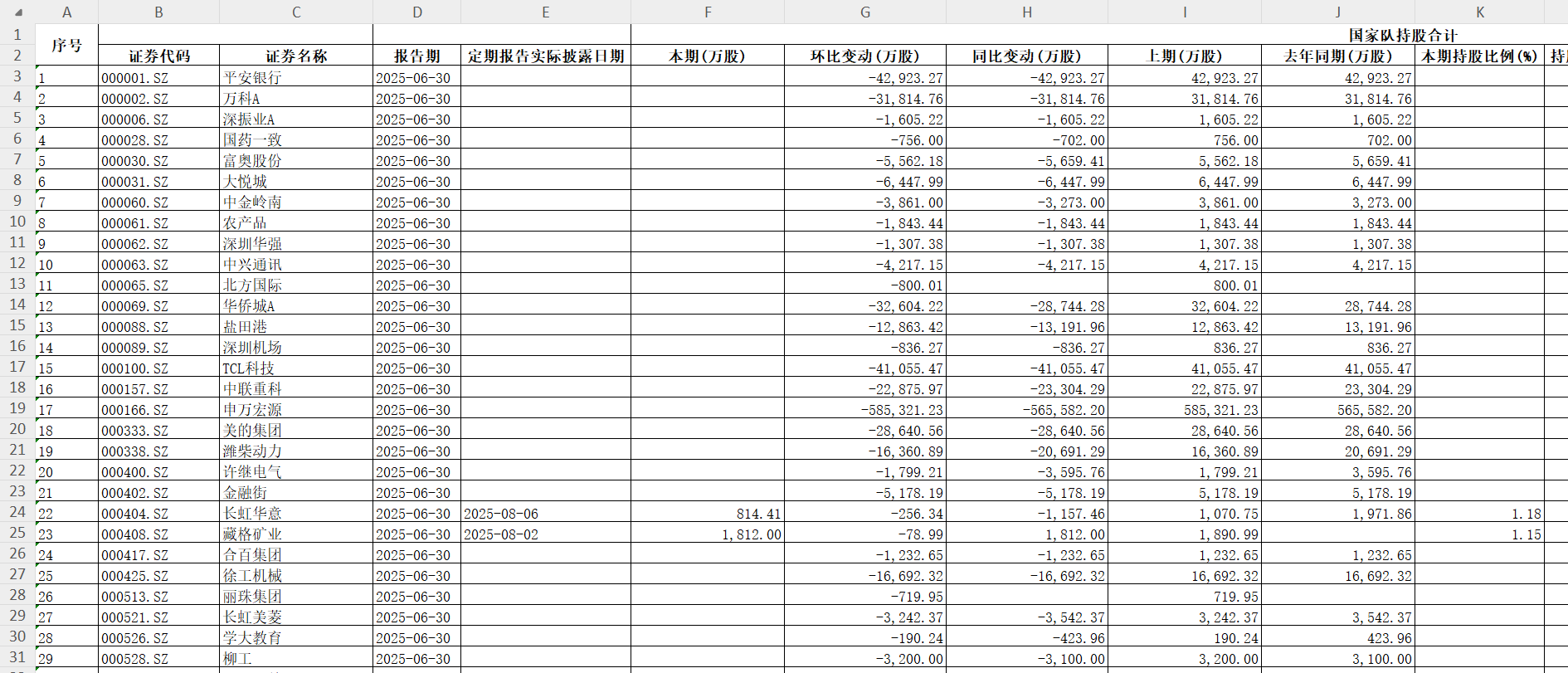 2003年第四季度-2025年第二季度国家队持股统计数据,季度数据