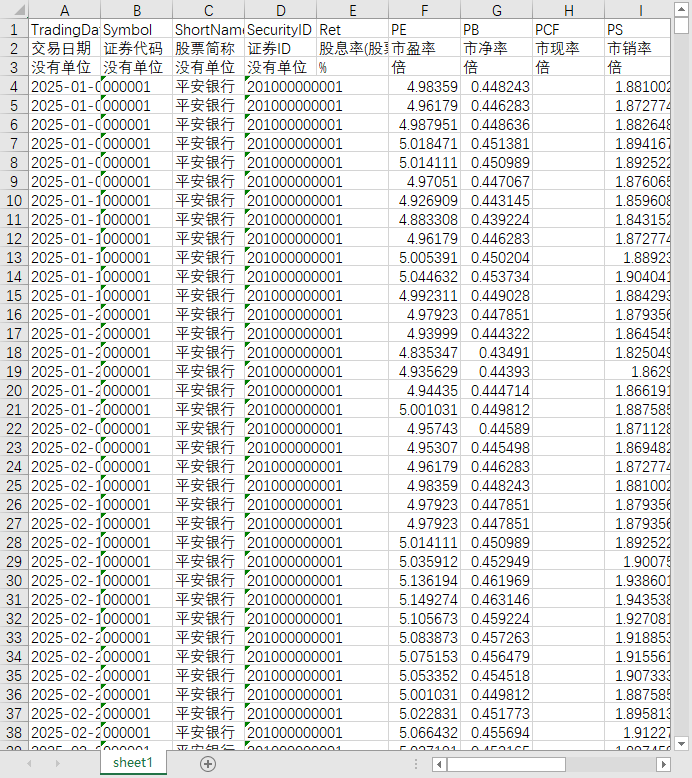 交易日期 证券代码 股票简称 证券ID 股息率(股票获利率) 市盈率 市净率 市现率 市销率 换手率 流通市值 涨跌幅 成交金额 流动性指标