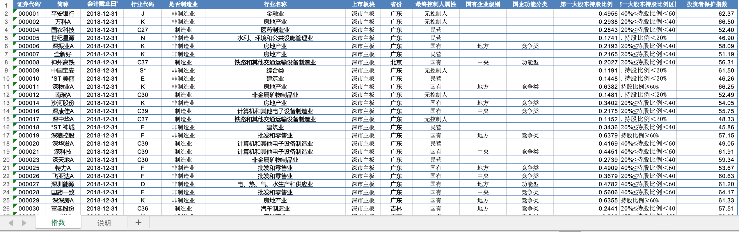 上市公司投资者保护指数2010-2019(数据所属年份为2009-2018)(北京工商大学)