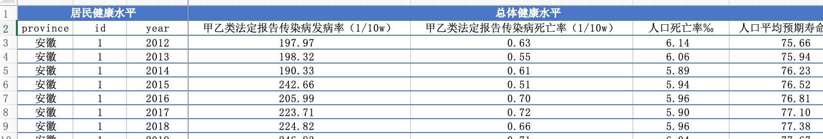 【数据】2012-2024全国各省居民健康水平与医疗资源指标面板数据