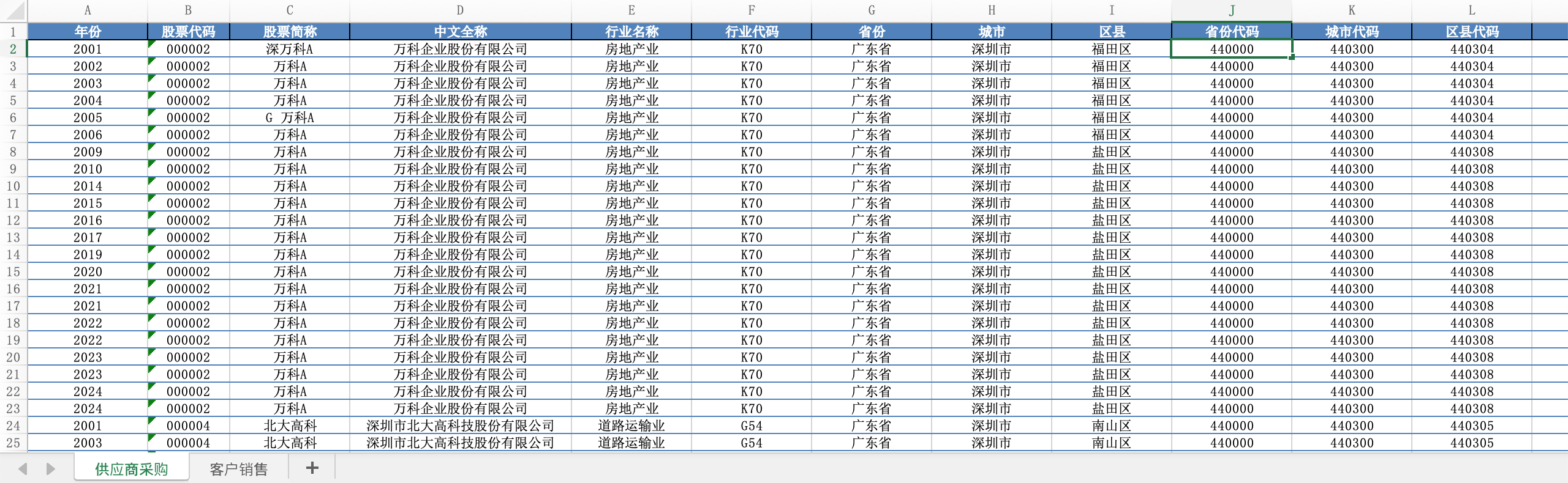 【数据】上市公司供应商采购、客户销售数据(2001-2024年)