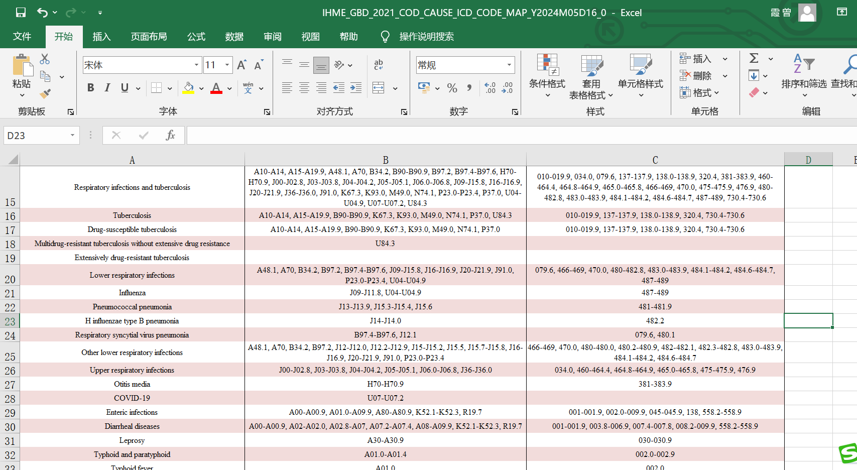 核心内容:由IHME牵头、全球17000+研究者协作的GBD 2023研究,完成了204个国家和地区及次国家地点的疾病、伤害与风险因素负担估算。配套数据表精准呈现国际疾病分类(ICD-9、ICD-10)代码与GBD界定的死亡原因、非致命原因的对应映射关系,为全球卫生决策提供标准化数据支撑。