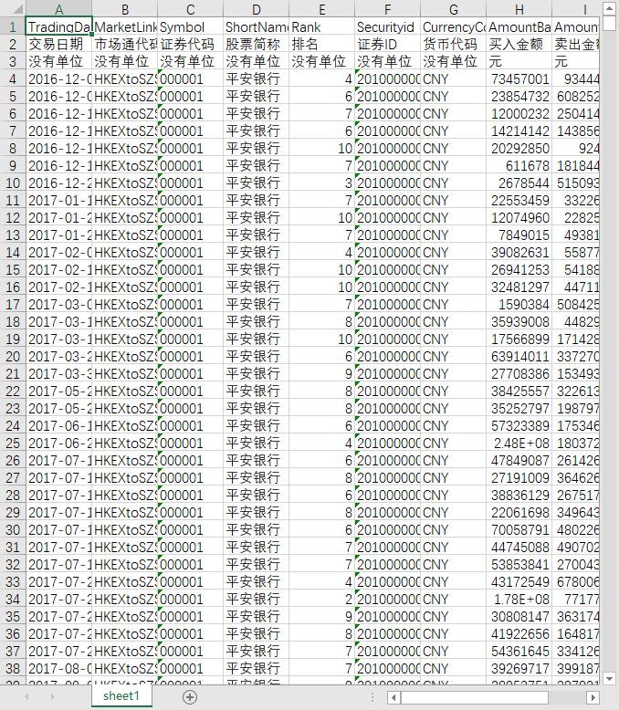 交易日期 市场通代码 证券代码 股票简称 排名 证券ID 货币代码 买入金额 卖出金额 买入卖出总金额