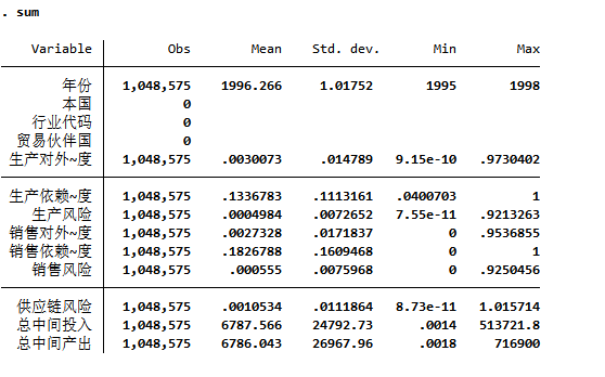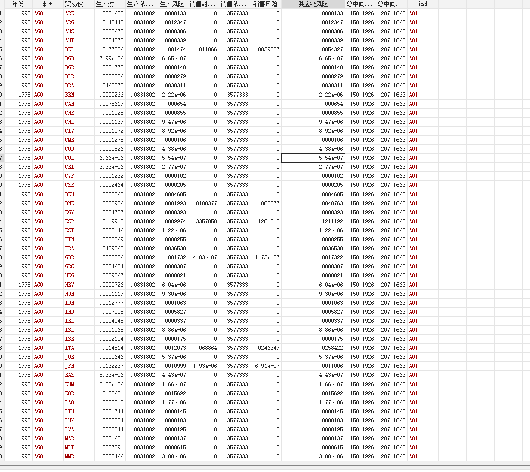 包含指标:生产对外依赖度 生产依赖集中度 生产风险 销售对外依赖度 销售依赖集中度 销售风险 供应链风险