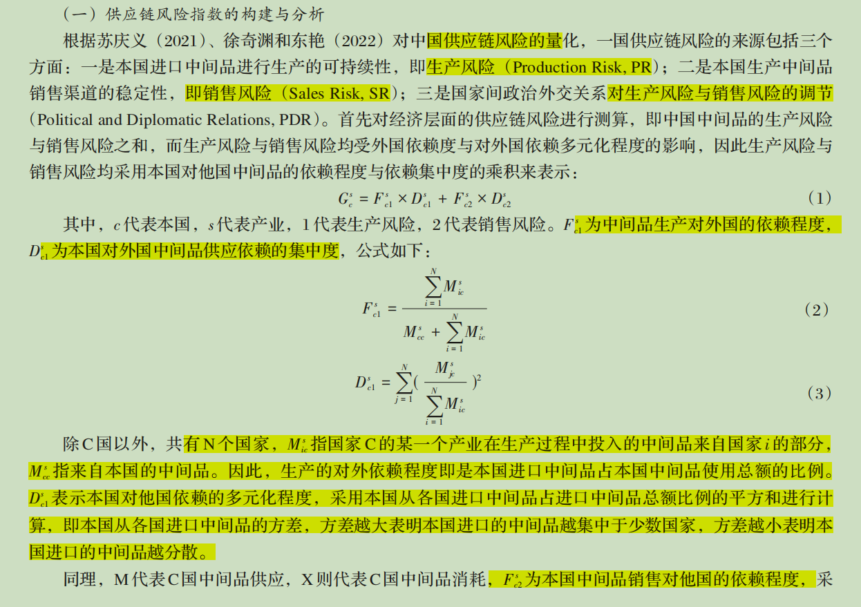 供应链风险=生产风险+销售风险=生产对外依赖度*生产依赖集中度+销售对外依赖度*销售依赖集中度