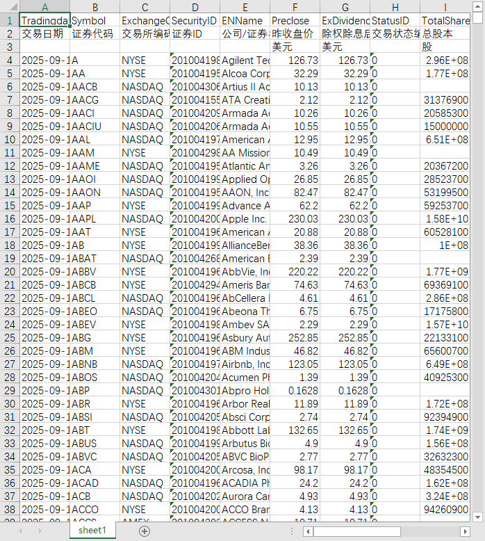 数据范围:美股个股数据,NASDAQ:纳斯达克证券交易所;NYSE:纽约证券交易所;AMEX:美国证券交易所;BATS:BATS交易所;NYSE-ARCA:Archipelago电子证券交易所的各个个股数据