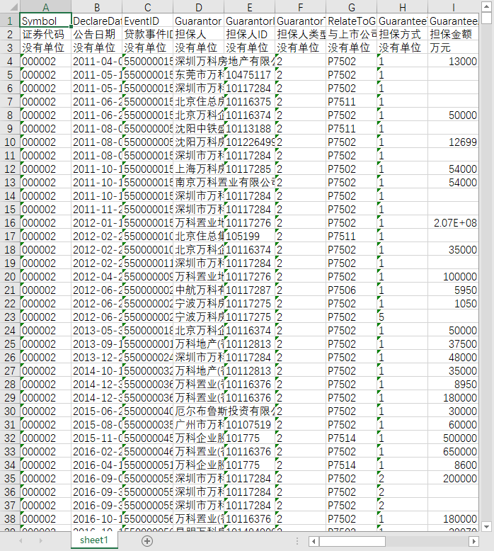 证券代码 公告日期 贷款事件ID 担保人 担保人ID 担保人类型 与上市公司关系编码 担保方式 担保金额 担保物名称 担保物类别 担保物账面价值 担保物公允价值 评估机构 担保起始日期 担保结束日期 担保期限 续保期限 续保日期 备注