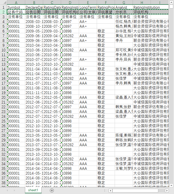 证券代码 公告日期 评级日期 评级机构ID 公司(主体)信用评级 评级展望 分析员 评级机构