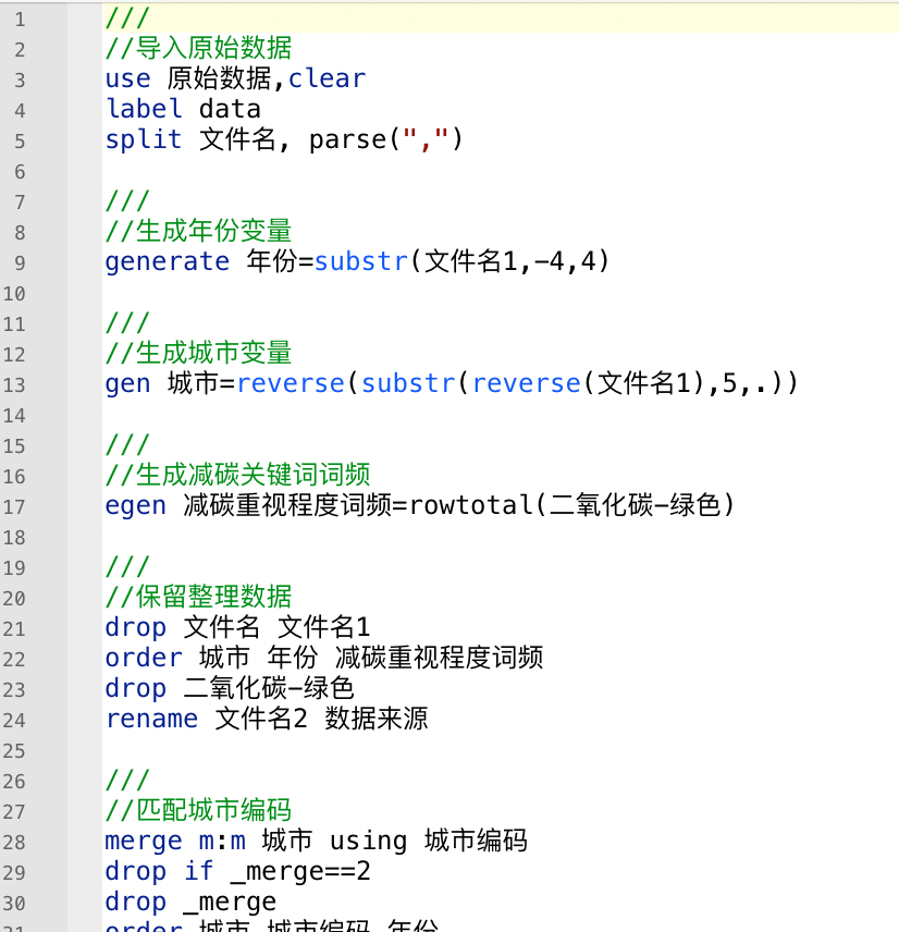 本数据参考C刊《管理评论》佟岩(2024)老师的做法,使用各年度省级政府工作报告中“减碳”关键词的词频总数来测度地方政府对“减碳”的重视程度,“减碳”关键词包括二氧化碳、低碳、减排、节能、能耗、环境保护(环保)、生态、绿色。