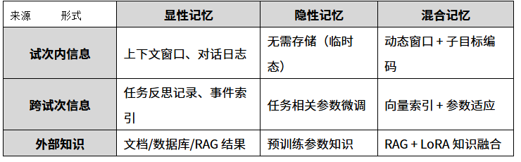 跨试次信息(Across-trial):多次交互中的经验累积,构成情景记忆。