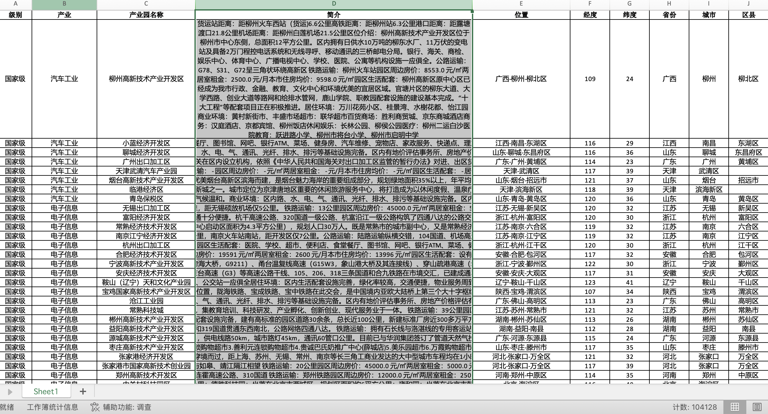 全国各级别产业园区基础信息数据库(地理坐标+属性分级,2025年更新版)