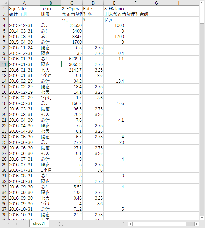 统计日期 期限 常备借贷便利操作 利率 期末常备借贷便利余额
