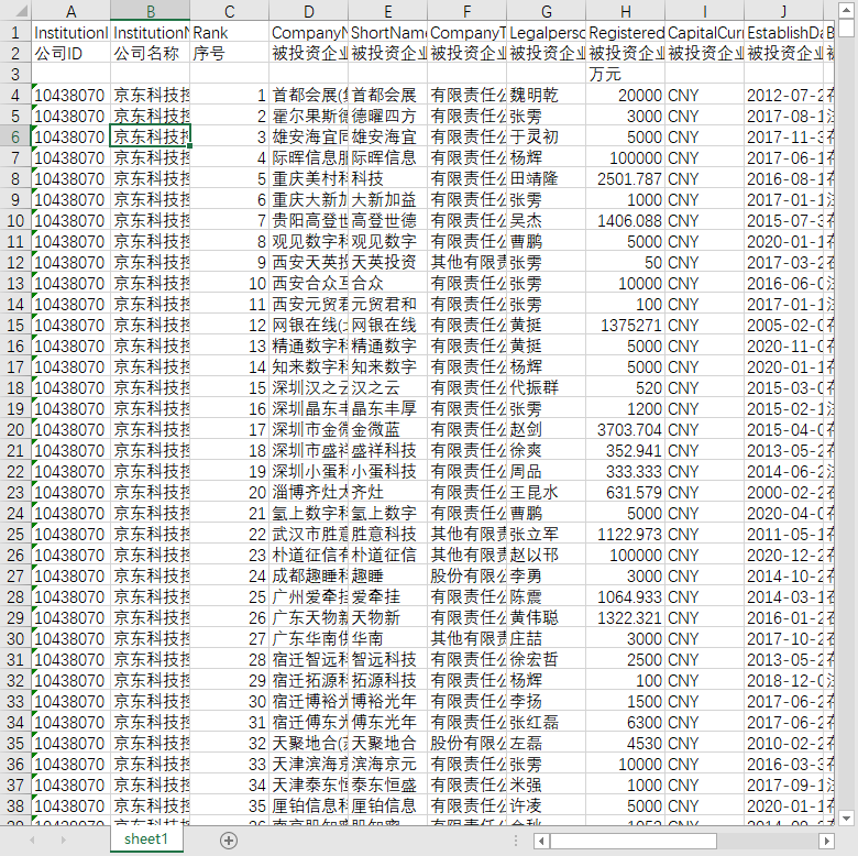公司ID 公司名称 序号 被投资企业名称 被投资企业简称 被投资企业类型 被投资企业法定代表人 被投资企业注册资金 被投资企业注册资金币种 被投资企业成立时间 被投资企业经营状态 被投资企业统一社会信用代码 被投资企业经营范围 投资额 投资占比 投资额币种