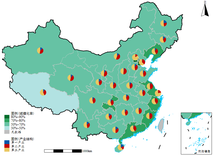 对于很多需要绘制中国省级地图的小伙伴,这份资料提供了一个高质量、易操作的参照。您只需要按照资料中的说明,结合自己的数据对绘图代码进行少量的修改,即可生成一副高质量的精美中国省级地图。实际效果如下: