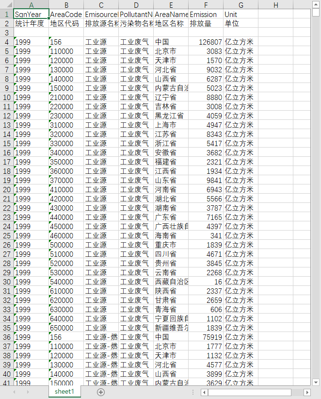 统计年度 地区代码 排放源名称 污染物名称 地区名称 排放量 单位