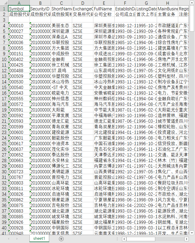 成份股代码 成份股代码ID 成份股简称 交易所代码 公司全称 公司成立日期 首次上市日期 主营业务 注册地址 所属省份 所属城市 所属行业代码 所属行业名称 中上协行业代码 中上协行业名称 使用标识