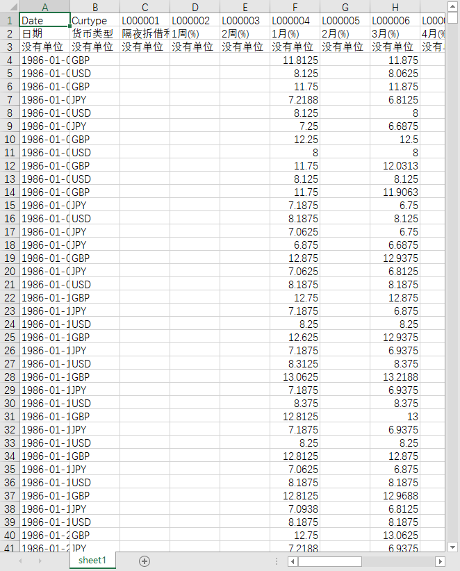 日期 货币类型 隔夜拆借利率(%) 1周(%) 2周(%) 1月(%) 2月(%) 3月(%) 4月(%) 5月(%) 6月(%) 7月(%) 8月(%) 9月(%) 10月(%) 11月(%) 12月(%)